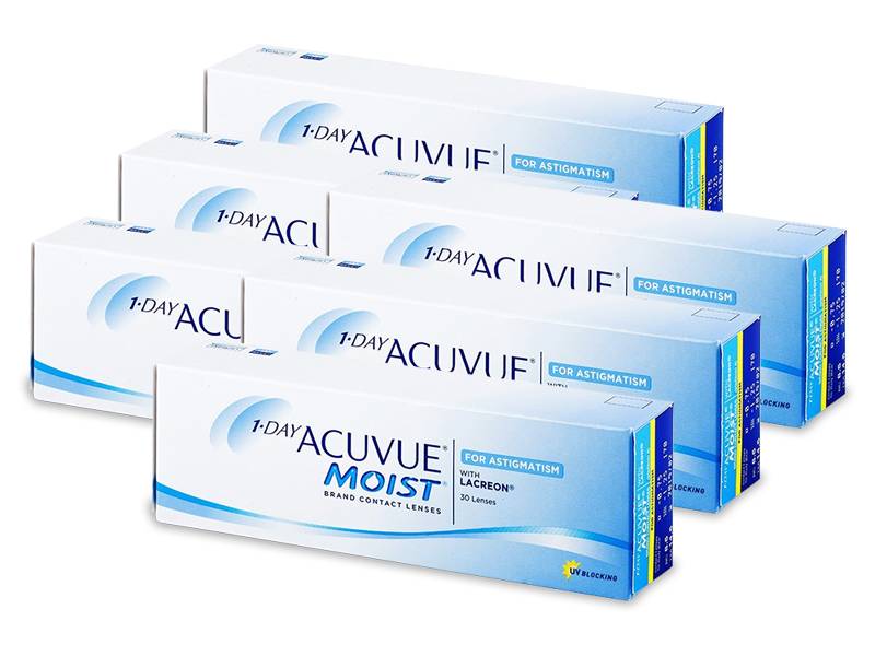 1-Day Acuvue Moist so nove dnevne kontaktne leče za astigmatizem družbe Johnson & Johnson, izdelane z uporabo edinstvene patentirane tehnologije LACREON s širokim naborom veliko parametrov . Proizvajalec navaja 95 % uspeh pri prvem poskusu vstavljanja leče v oko. Zadržuje vlago in ohranja občutek svežine in udobja skozi cel dan. Nova tehnologija omogoča hiter in enostaven stik z lečo. Poleg celodnevnega udobja zagotavlja zaščito pred škodljivimi UVA in UVB žarki - največjo UV zaščito med razpoložljivimi kontaktnimi lečami - proizvajalec navaja 85 % zaščito pred UVA žarki in 99 % zaščito proti UVB žarkom. Indikator leče 123 za pravilno namestitev kontaktnih leč označuje, ali je leča pripravljena za namestitev v oko. Ne glede na vaš aktiven način življenja leča ostane v očesu. Tako lahko nemoteno uživate v čudovitih trenutkih med vožnjo, delom, plesom, športom ali gledanjem televizije.