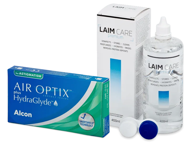 Air Optix plus HydraGlyde for Astigmatism (3 leče) + tekočina Laim Care 400 ml