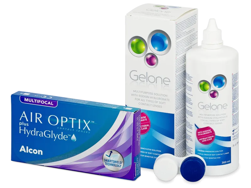 Air Optix plus HydraGlyde Multifocal (6 leč) + tekočina Gelone 360 ml
